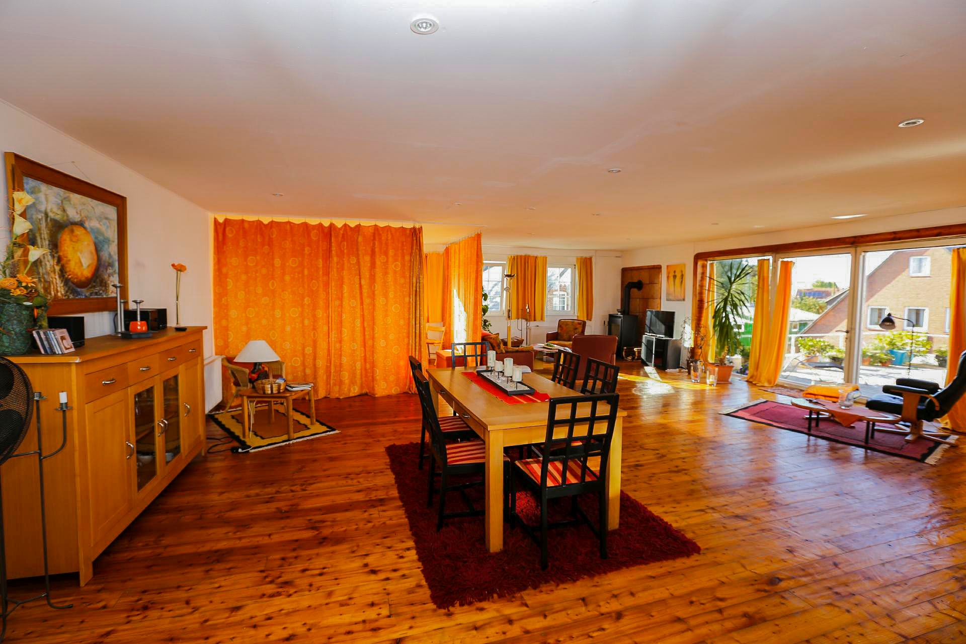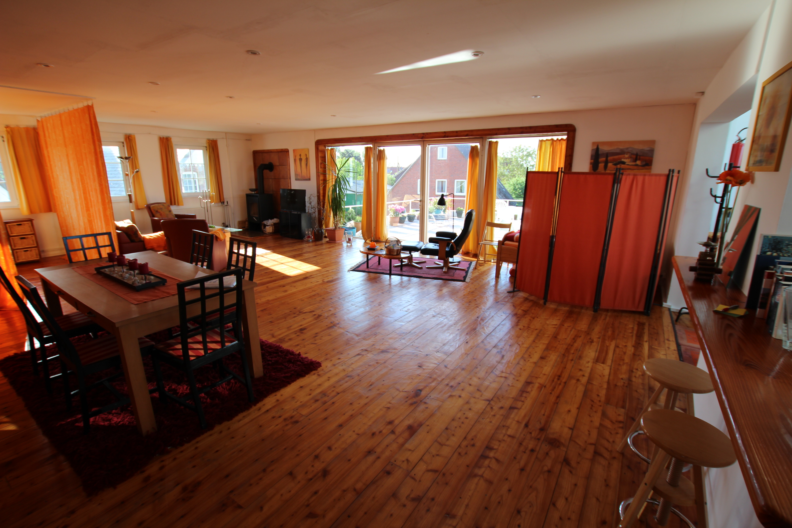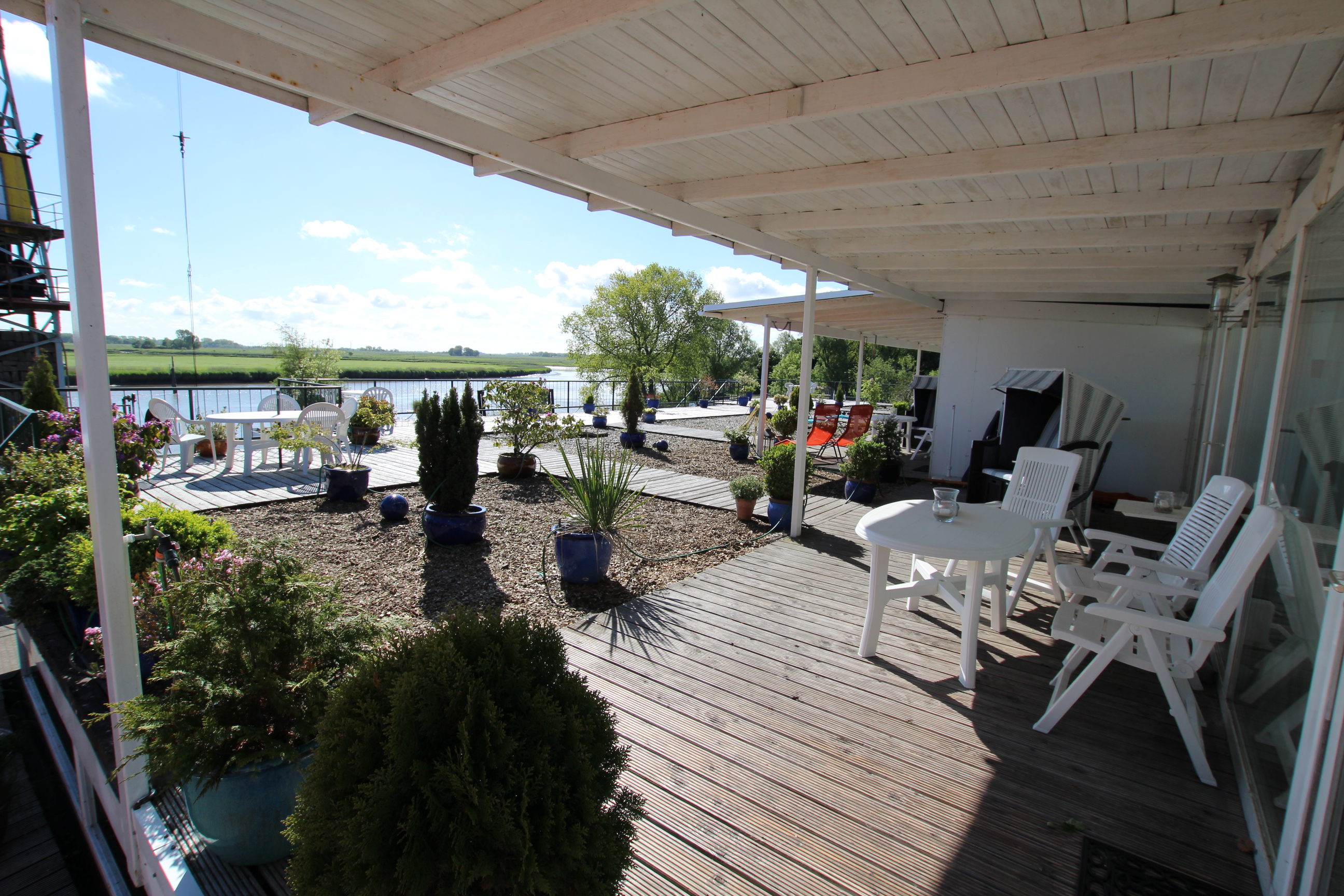 und Essecke mit Blick übers Wasser befinden sich im vorderen Teil der Wohnung. Im großen Wohnraum ist eine großzügige